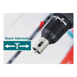 • Su diseño ergonómico y liviano permite trabajar durante largas jornadas sin fatiga, mientras que su embrague y control de profundidad ajustable aseguran atornillados precisos en todo tipo de placas