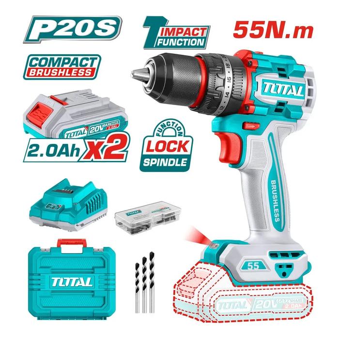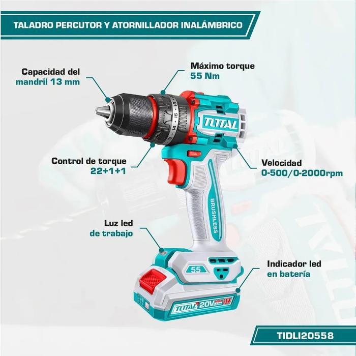 Taladro Atornillador Percutor 20V BL Industrial Total TIDLI20558-4