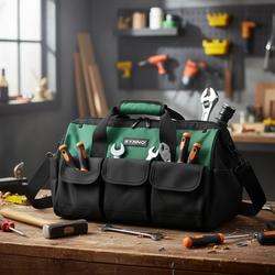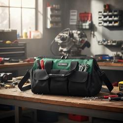 • Confeccionado con poliester de 1680 diniers, correa acolchada y asas antideslizantes, este bolso permite no solo transportar sino almacenar en forma permanente muchas herramientas