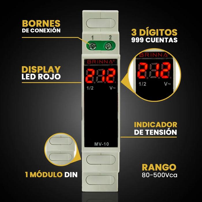 Voltímetro Digital para Riel Din Monofásico Brinna MV-10